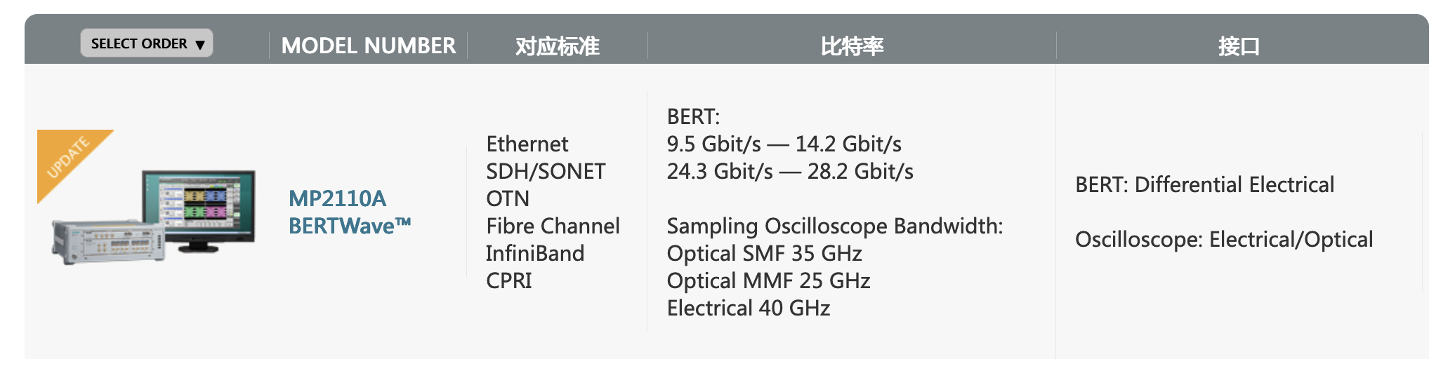 安立公司是世界領(lǐng)先的誤碼率測(cè)試測(cè)量產(chǎn)品供應(yīng)商,支持?jǐn)?shù)率100Mbit/s到64.2Gbit/s的誤碼率測(cè)試。