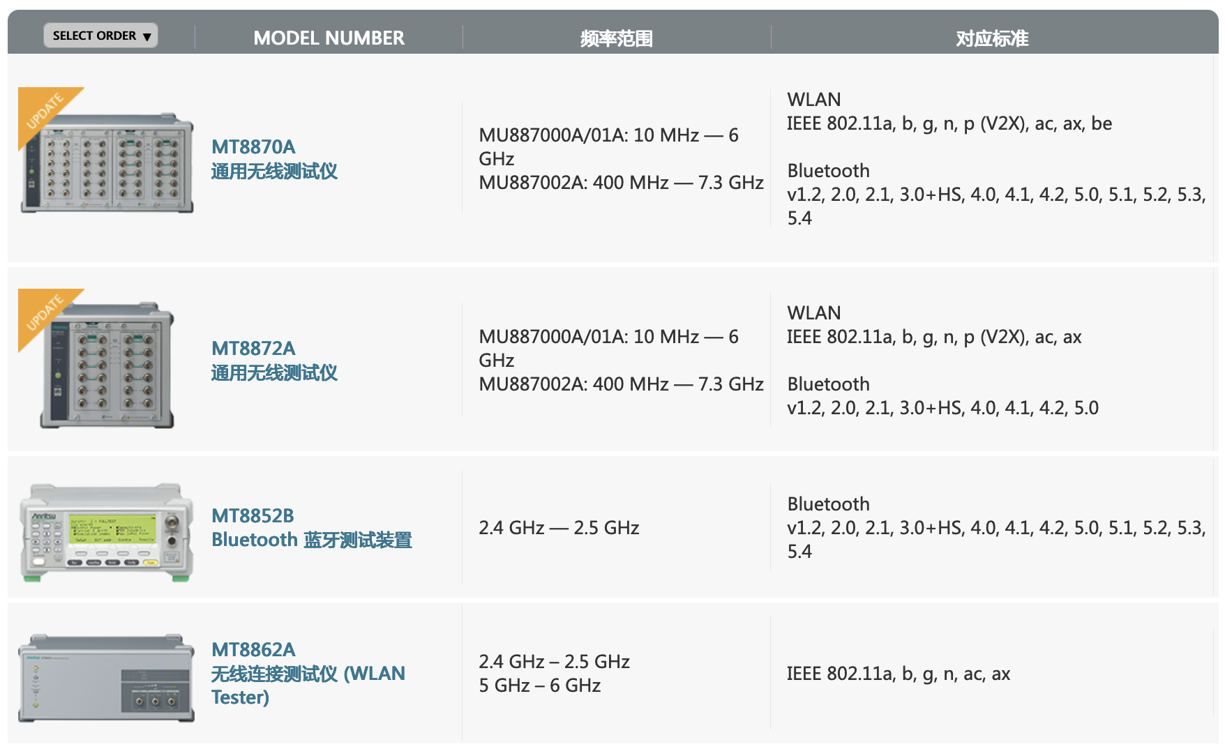 安立的產(chǎn)品適用于從藍(lán)牙和Wi-Fi設(shè)備研發(fā)到制造的各個(gè)測(cè)試階段,可以提供理想的測(cè)試解決方案。...